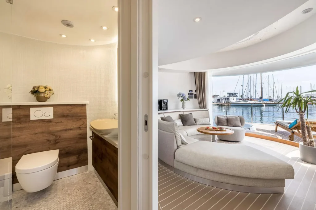 Varje villa rymmer upp till fyra gäster och är utformad med fokus på estetik och funktion: en salong, fullt utrustat kök, badrum, en sittgrupp som kan omvandlas till säng, utomhusjacuzzi och panoramafönster från golv till tak. På övre våningen ligger ett cirkelformat sovrum med panoramautsikt. Mjuka textilier, rundade former och generösa glaspartier skapar en unik känsla av att sväva på vattnet. Villa Amor, som tillverkades 2023 och rymmer upp till två personer, är ett prototypboende som ligger förankrat i Split och kan hyras privat.